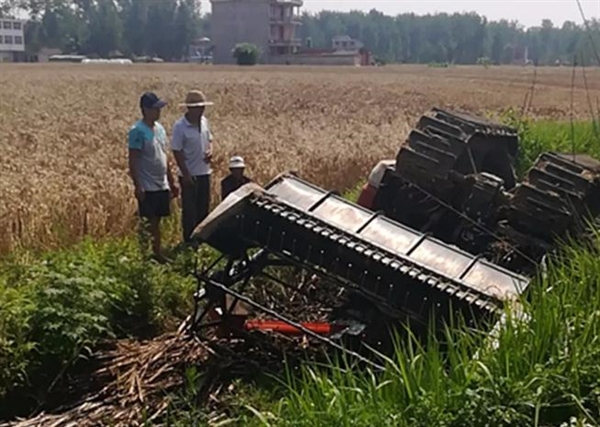 事情发生在午季小麦抢收的某一天上午,阜南县王堰镇张楼村众多群众把小麦抢收作为头等大事.蒋庄村民汪xx让收割机司机刘xx收割自家的小麦.收割不到一半,司机倒车不幸侧翻,由于惊慌失措,被收割机砸在水里身亡.王堰镇派出所闻讯后在所长焦占海统一指挥下,指导员李先锋,干警王振军,程磊,协警李加勇,张自强,会同王堰镇卫生院医生及时奔赴事发现场维护秩序,紧张施救,并对死者处理善后.